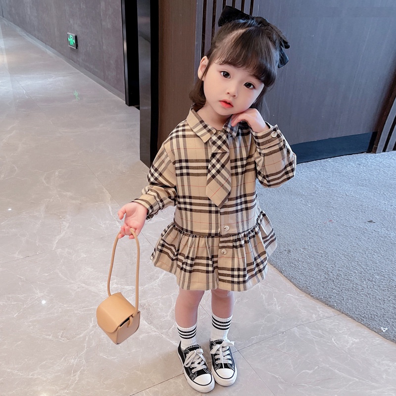 New Kid Girl Autumn Clothing School Style Fashion Cute Khaki Plaid Long Sleeve Dress For 2 10 Year Old Shopee Singapore